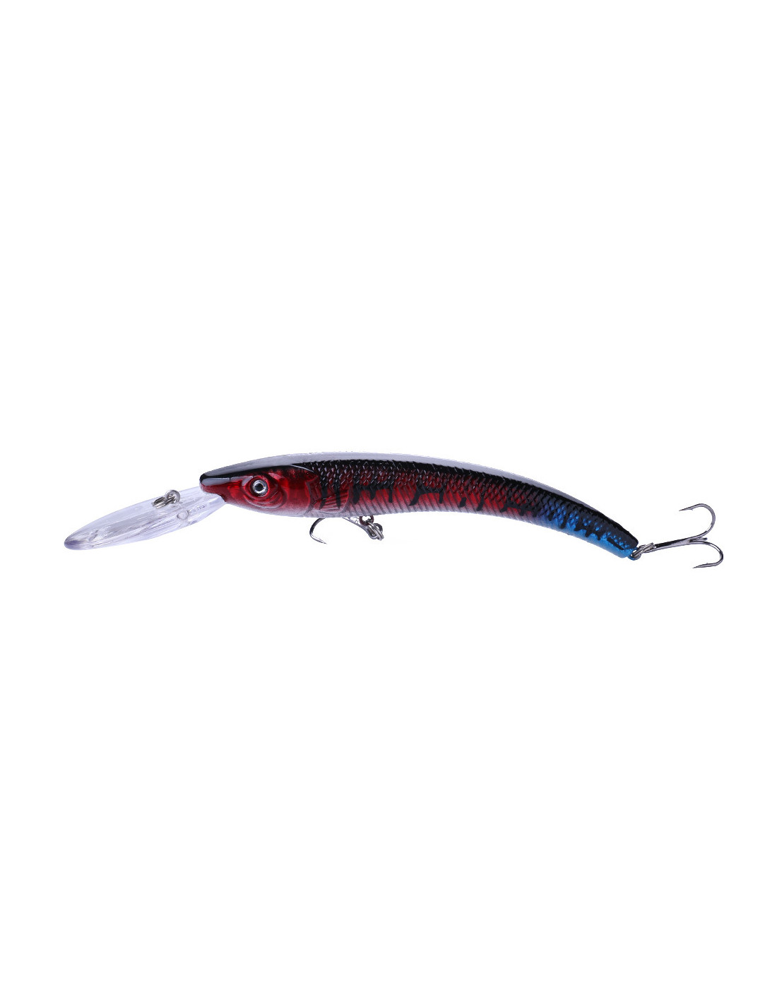 Reef Runner Deep Diver 800 глибоководний воблер. Завдяки вигнутій формі тіла дуже швидко розгойдується на повідку. Найкраща приманка для лову великого судака. Воблер оснащений двома найгострішими потрійними гачками. При тролінгу здатний швидко занурюватись на глибину до 8.5 метрів.