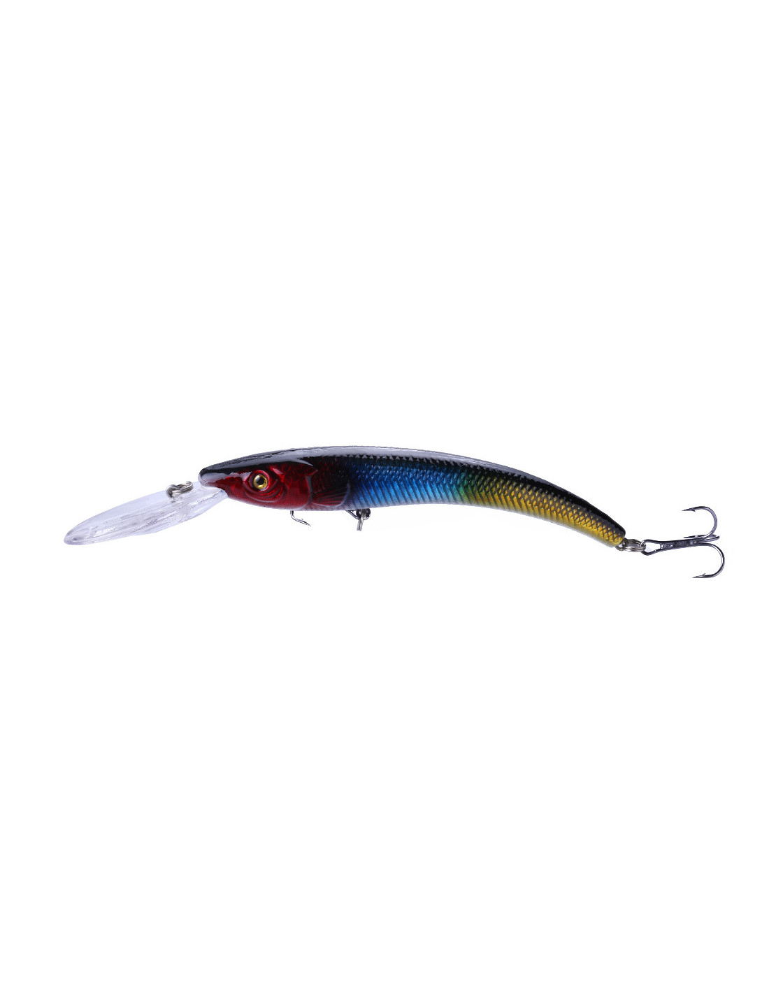 Reef Runner Deep Diver 800 глибоководний воблер. Завдяки вигнутій формі тіла дуже швидко розгойдується на повідку. Найкраща приманка для лову великого судака. Воблер оснащений двома найгострішими потрійними гачками. При тролінгу здатний швидко занурюватись на глибину до 8.5 метрів.
