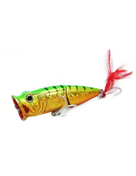 Единственный составной поппер в ассортименте нашего сайта! Необычная форма привлекает внимание не только спиннингистов, но и различную хищную рыбу украинских водоемов. Bearking Tank 70F цвет A это составной поппер на шарнирном металлическом соединении с губами особой формы. Именно благодаря большой округлой выемке с двумя отверстиями по бокам поппер издает громкие булькающие звуки с разбрызгиванием воды по сторонам. Особенность строения корпуса, а именно задняя подвижная часть добавляет остаточных колебаний, что дополнительно провоцирует хищника на атаку на паузе проводки. Задний тройник имеет вызывающее красное оперение (опушку), что создает впечатление раненой рыбки. Реалистичности добавляют выраженные глаза с бровными дугами.