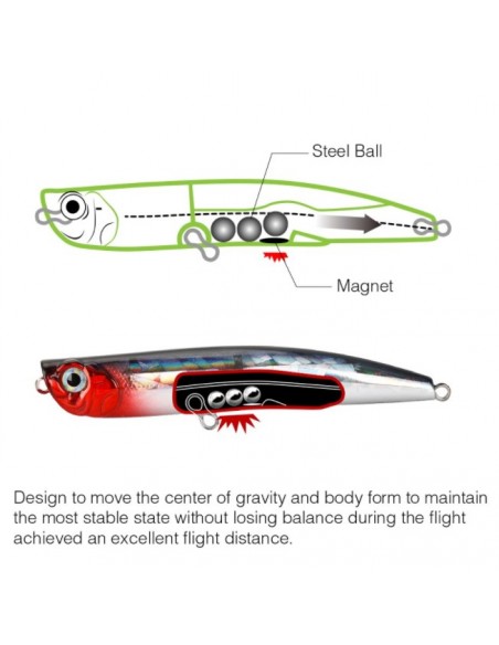 Поппер Tsurinoya DW17 отличается чашевидным ртом с большым углублением, который обеспечивает отличное бульканье воды, что провоцирует хищника на атаку приманки. Данный воблер великолепно подойдет для ловли щуки на отмелях и вдоль камышей. Встроенная система магнитного заброса обеспечивает великолепную дальность и точность заброса. Помимо магнитной системы, дальность заброса обеспечивает обтекаемая форма поппера.