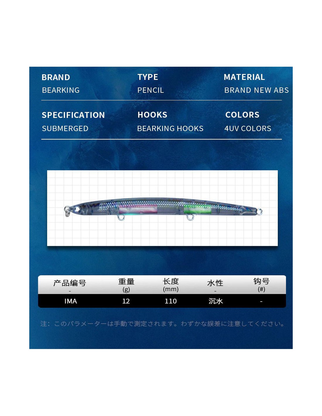 Приманка Bearking Pencil 110 110мм 12г Цвет A, тонущая (Реплика Ima)
