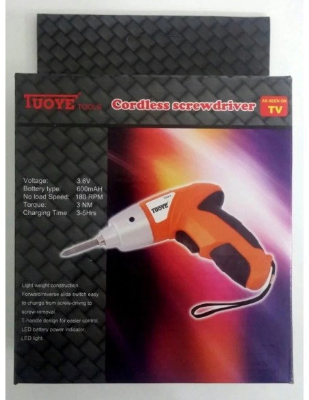 Электроотвертка Tuoye Cordless Screw с 2 битами – это многофункциональное устройство, которое можно использовать как для профессиональных мастеров, так и в быту. Наличие в комплекте 2 различных насадок позволяет вкручивать и выкручивать большинство крепежных элементов.